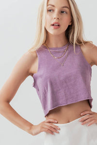 Urban Daizy Mineral Wash Raw Hem Cropped Tank - Purple