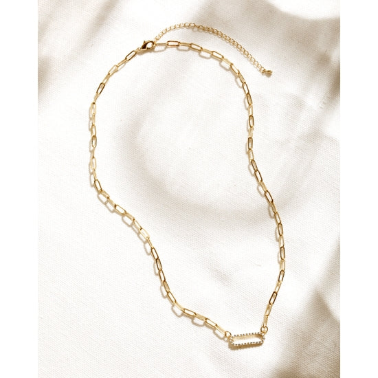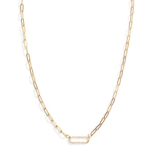 Studio Collection Necklace - Large narrow pave link with link chain,Gold
