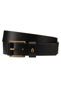 A vegan leather strap with a custom single post steel buckle. Rivets are re-enforced for durability and the keeper sports embossed branding.