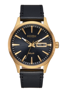 Nixon Sentry Solar Leather Watch - All Gold/Black