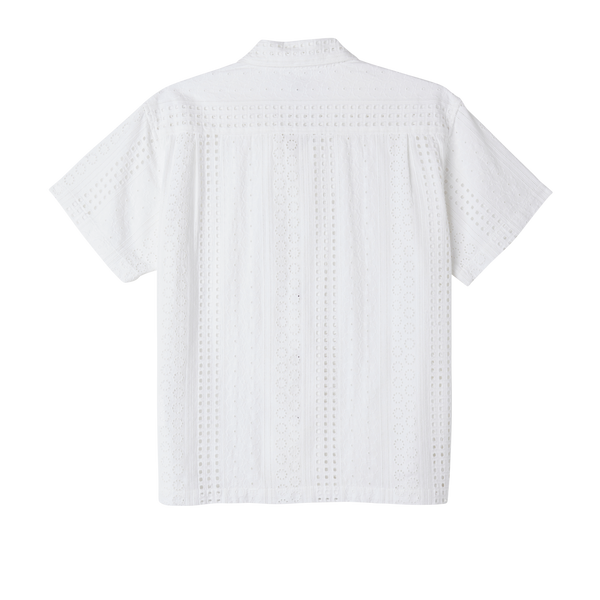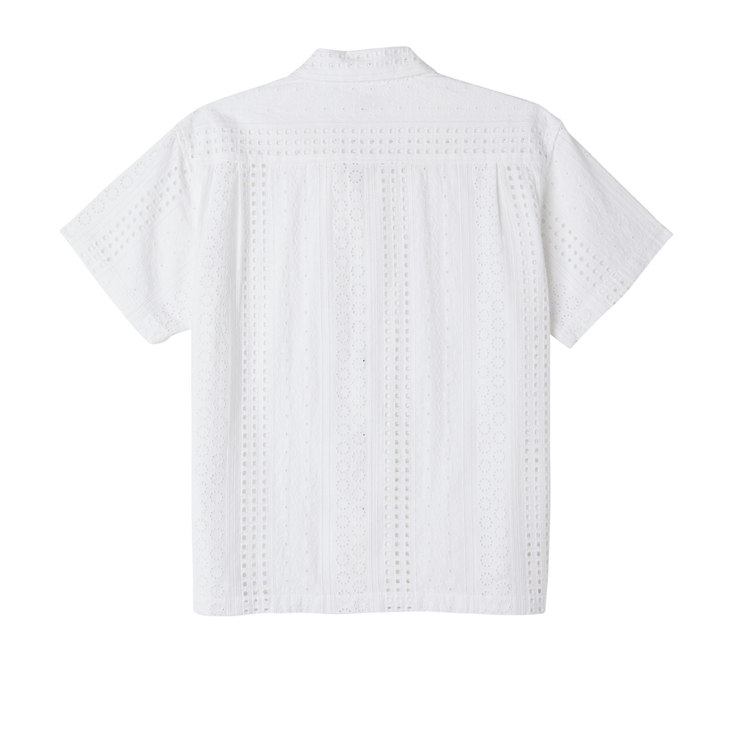 EMBROIDERED EYELET SHORT SLEEVE SHIRT.
