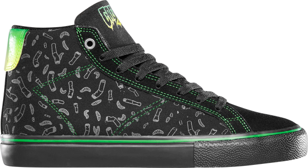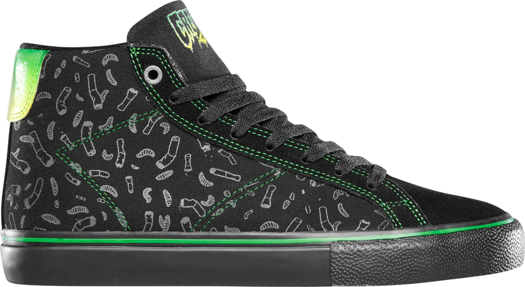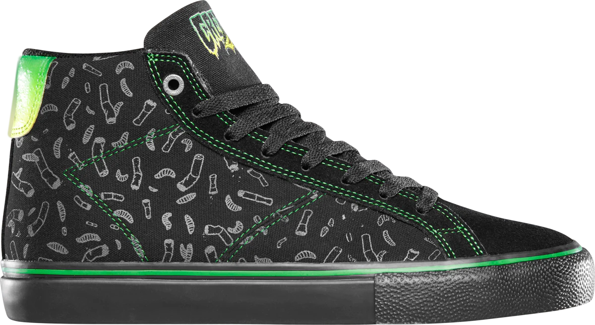 TRUE HIGH TOP SILHOUETTE, VULCANIZED CONSTRUCTION, G6 FOAM INSOLE, DOUBLE WRAPPED FOXING, TRIANGLE TREAD, AND CUSTOM TEXTURED TOE BUMPER.