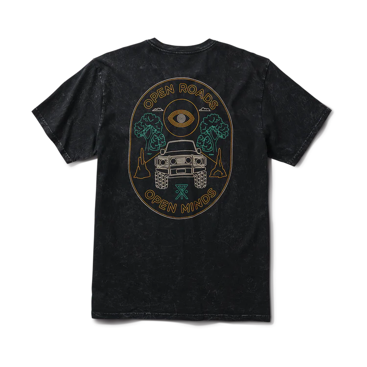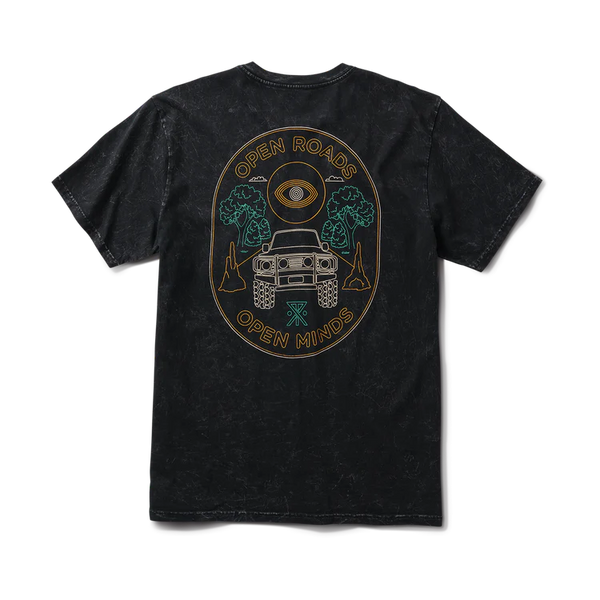 Hit the road in style with this black vintage-washed graphic tee featuring an off-road adventure design. Crafted for comfort and durability.