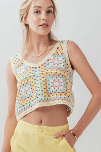 PASTEL GEO CROCHET KNIT CROPPED TANK