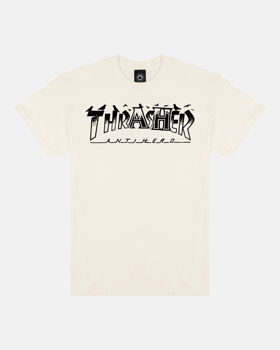 Standard fit T-shirt woven from cotton, finished with Thrasher Magazine x Antihero Skateboards artwork at center-chest and sewn-in label at inner neck.