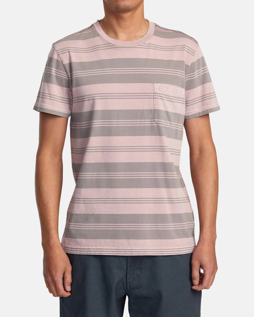 Crafted of premium cotton jersey with an incredibly soft feel and a lived-in look, the PTC Stripe Knit T-Shirt features a regular fit, logo chest embroidery, and the trademark RVCA red stitch.