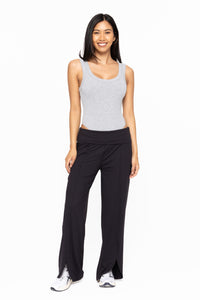 This tank top bodysuit features a ribbed texture and snap-on panty for easy wearability. The perfect piece to pair with joggers, jeans, or a skirt!