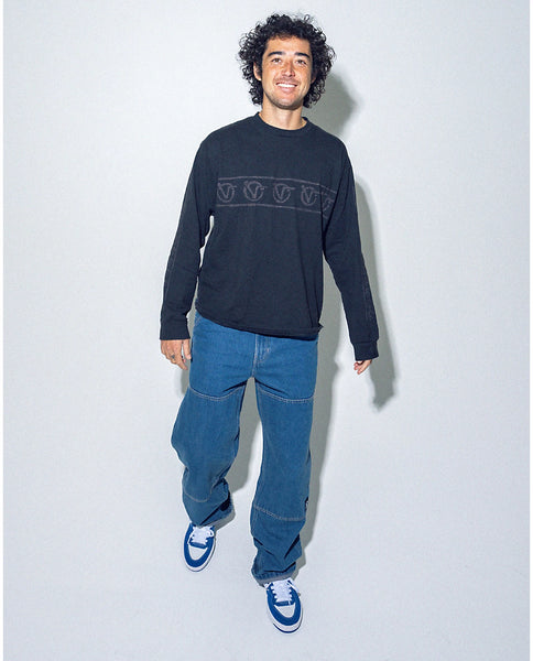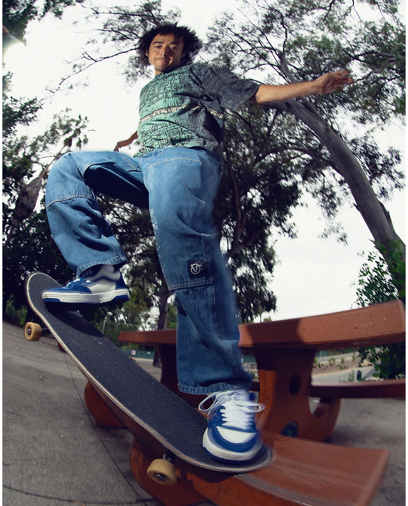 Accompanying the release of his second signature skate shoe, the Rowan 2, Rowan and Vans joined forces for a complete apparel and accessories collection. Made from heavy weight cotton denim, the Rowan Zorilla Drill Chore Loose Carpenter Denim Pant features classic carpenter-style details while adding in upgrades like double-layered knee panels and subtle V logo branding. It’s effortless style, and that always makes an impact. Just like Rowan.