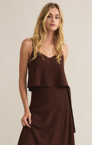 This breezy cropped tank, crafted from textured cotton, is all about easy vibes with its v-neckline, adjustable straps, and fringe hem detail. Perfect for sun-drenched days and layered looks alike.
