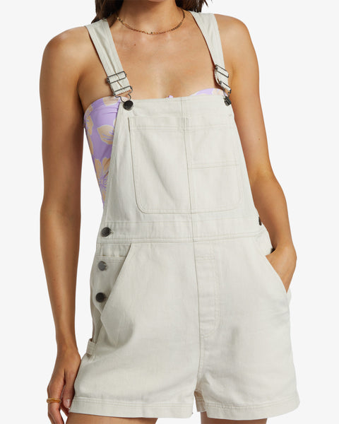 The Sand Canyon Overall Shorts from the Billabong's Denim Collection are crafted with cotton twill fabric in a relaxed fit. Featuring metal hardware, adjustable shoulder straps, and a multiple-pocket design, they're a perfect choice for active summer days.