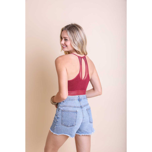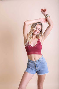 Seamless Ribbed Longline Bralette With Dot Mesh