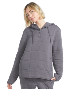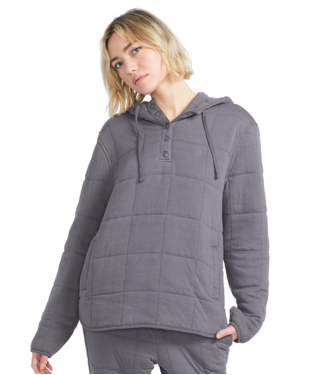 Say hello to your new favorite hoodie. This loose-fitting pullover blends cotton comfort with polyester durability, featuring a mock neck and unique scalloped hem. Functional details like welt pockets and a bungee cord hood add practicality, while the subtle Circle Stone embroidery adds a touch of brand flair to this versatile, everyday piece. Featured here in dark grey.
