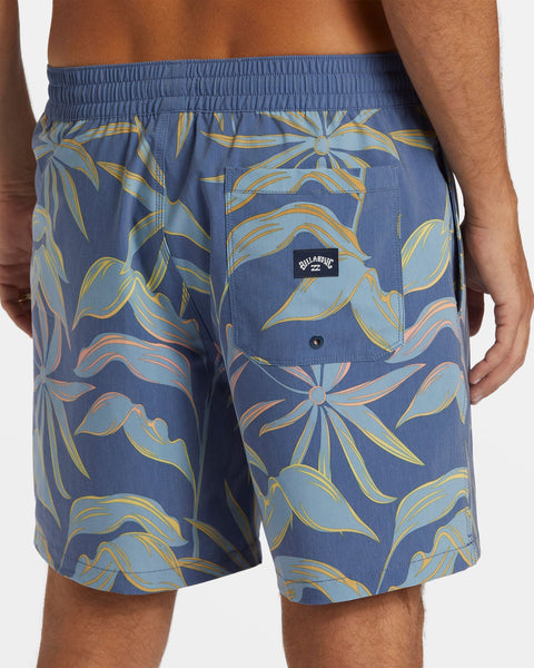 - High-performance technology meets laid-back design in Billabong's Sundays Layback shorts. These 17" elastic-waist shorts are made of partially recycled material with 4-way stretch and a micro-repel waterproof coating for hyper-fast drying time, meaning now you can squeeze in a quick dip before the lunch break is over.
