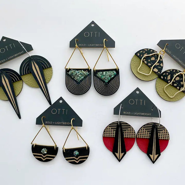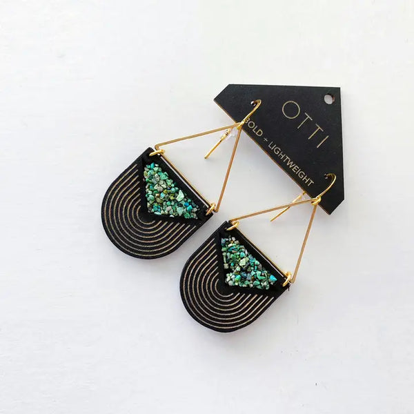 A statement earring with REAL turquoise inlay, the Triangular Arch earrings are a subtle statement and nod to architecture and the southwest. Overall length: 3.5" Birch with real turquoise inlay Nickel free, lead free brass findings *Please note that due to the nature of natural turquoise, each inlay will vary slightly (but all are guaranteed to be beautiful)