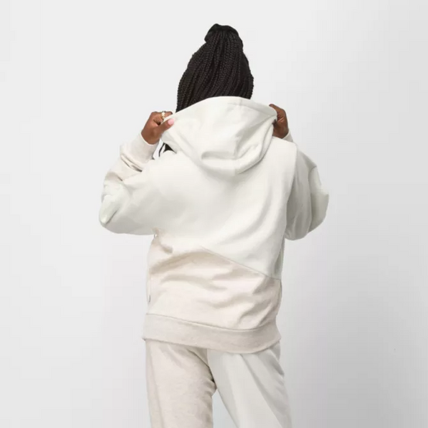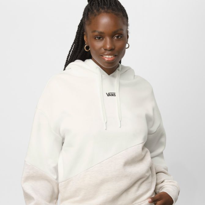 The Blocked Off Hoodie is a 60% cotton, 40% polyester pullover hooded sweatshirt with a blouson fit and colorblocked details at the body and sleeves. Logo embroidery at center front offers a subtle heritage vibe. Model is 5 feet 9 inches tall and wearing a size Small.