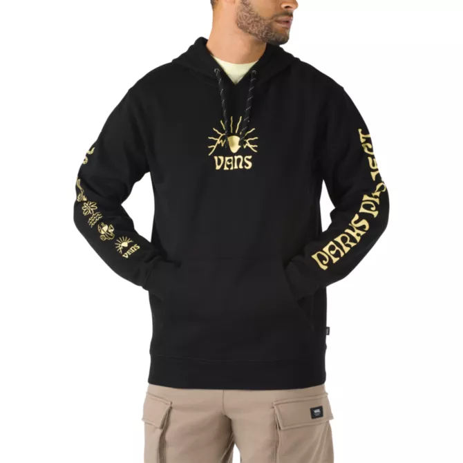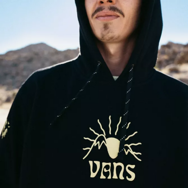 Parks Project's mission is to protect and preserve our parklands for generations to come by educating, advocating, volunteering, and activating park supporters to get involved in conservation. Dedicated to empowering the next generation of Park Champions, the Vans x Parks Project Iconic Pullover Hoodie celebrates our shared passion for adventure and creative exploration with custom artwork reminding us all to appreciate the natural wonders of our parks . . . but leave them better than we found them. This pullover hooded sweatshirt is made with 60% cotton, 40% polyester and includes a front pouch pocket. Graphics are featured at the chest, sleeves, and the hiking-inspired drawcords. Model is 6 feet tall and wearing a size Medium.