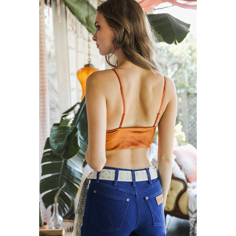 Velvet Longline Bralette 92% Nylon 8% Spandex Pull Over Bra Top with Adjustable Straps.