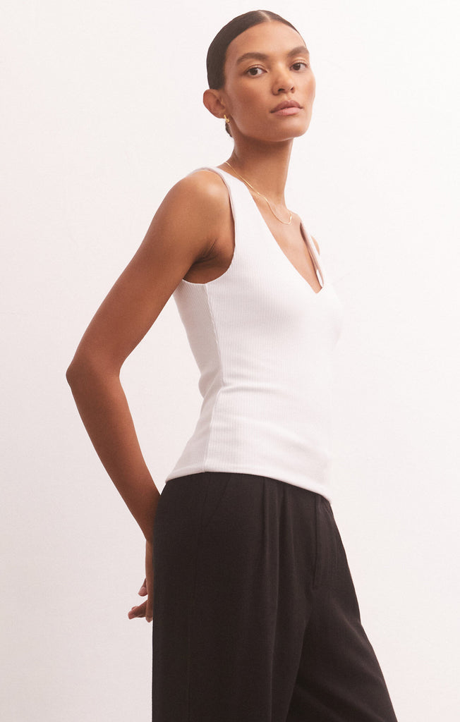 Sleek and structured, meet the Avala V-Neck Rib Top. Made using our signature Structured Rib fabric, this v-neck is double layered which gives it a heavier feel with a more sophisticated, clean finish. It is fitted, but has a nice stretch for all-day comfort. Fabric Content: 95% Rayon 5% Elastane