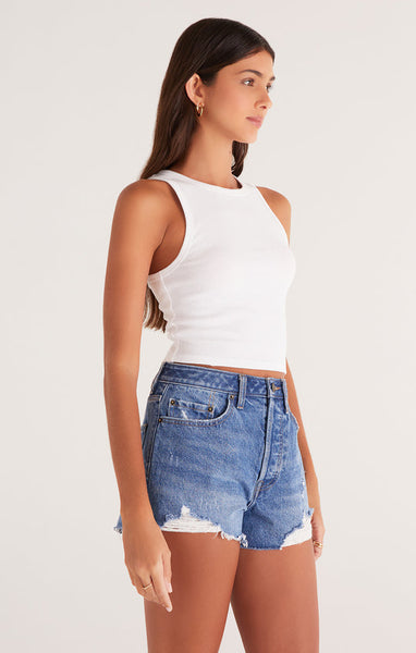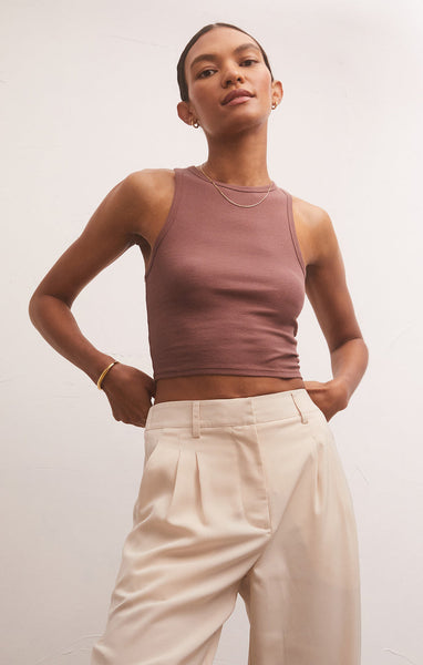 An essential for the season, the Hannah Cropped Rib Tank is made using Z Supply's ultra soft Premium Feather Rib fabric. Featuring a high neckline and open, sleeveless design, this slim fitting tank is the perfect base layer.