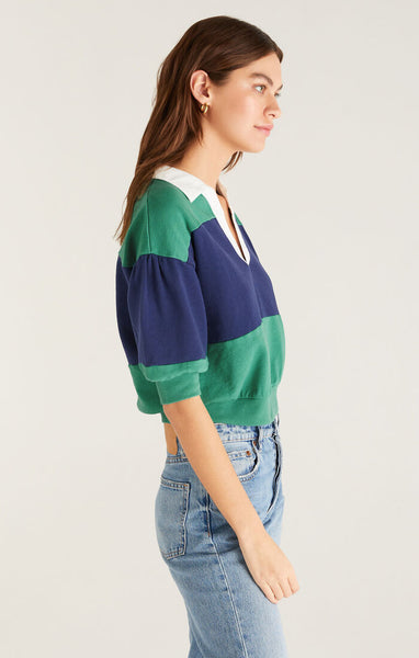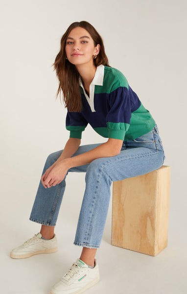 Z Supply has taken the rugby polo and modernized it. The Rugby Short Sleeve Sweatshirt features the familiar collared design, with a boxy, relaxed fit and relaxed sleeves. On certain body types, this top may have a cropped fit and pairs well with high rise styles. Fabric Content: 100% Cotton